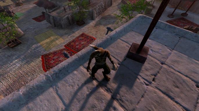 Visually Overgrowth looks all of it’s 9 years, and not in a good way. Despite heavy grass cover of some of the more pastoral sections, the world does feel rather empty. Townships feel lifeless, bar a few bits of foliage, some stacked boxes, and – for some reason – rugs in the streets. “Gosh, this town of endlessly repeating cobblestone texture is looking a bit bland. I wonder what I can do to spice it up? Ah, fuck it. I’ll just shove down a few rugs, it worked in the living room, right.” Bless the dev, I know I couldn’t make anything even remotely this good, or good looking, but I’m not the one selling this game.