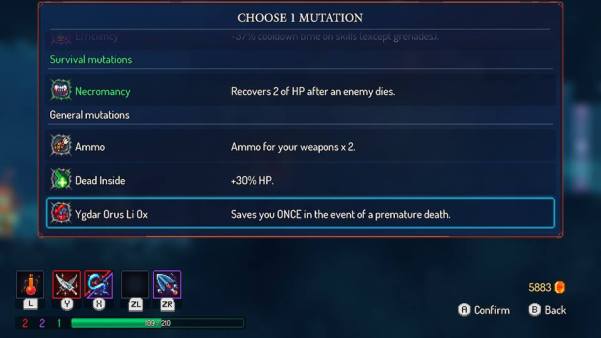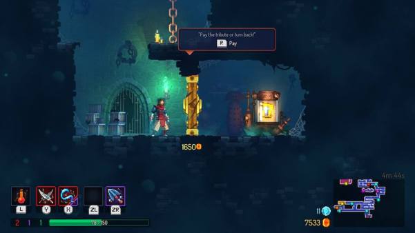 As I mentioned earlier, cells are the most important currency, but these are only spent between levels. Here you can buy those vital permanent upgrades. Want a health potion or two? Spend cells. Want to be able to keep a little gold for your next run? Cells. How about powering up the quality of weapons you find during your runs? CELLS (and plenty of them!). The more unlocks you buy, the more will open up. Behold the cycle of cell based capitalism!