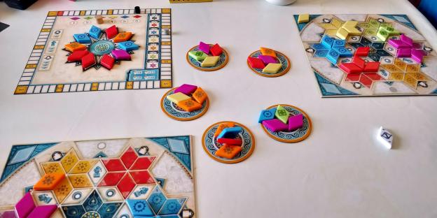 As the six rounds progress, the wild tile changes and the bag becomes more empty. When it’s finally drained of its precious contents, all those tiles in the box are placed back in.
