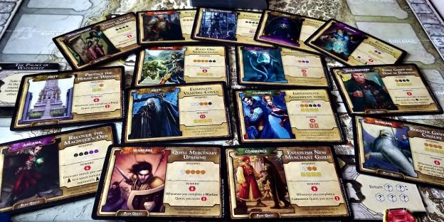 Once you’ve recruited enough of the right types of adventurer, you can send them off and complete your quests. This could have simply a victory point benefit, an ongoing benefit, or it could be one of the two types of quest that your secretive Lord gains a benefit for at the end of the game.
