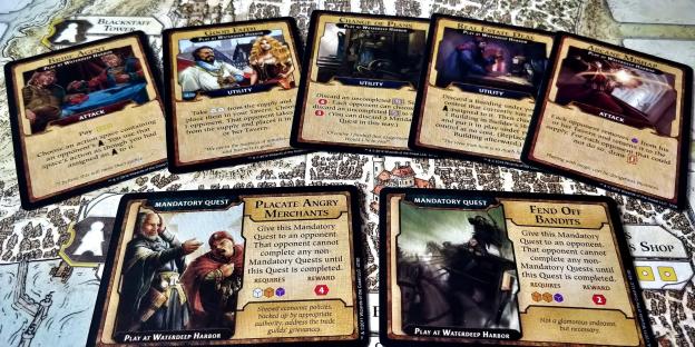 If you send a representative to the harbour, you can play an intrigue card from your hand. These may grant you extra adventurers or some coin to grease the wheels of your various schemes. Many of these will not only benefit you, but also your fellow players (though there may be a cost to those that want to ride your coattails).