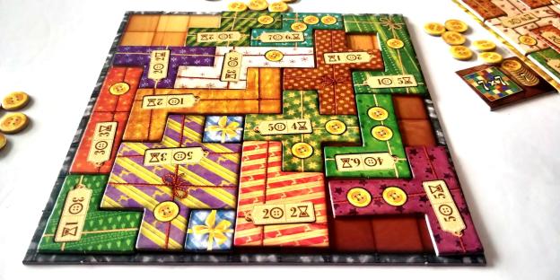 Speaking of which, the game ends when one player makes it to the centre of the time board. Final scores are based on the number of buttons you have earned minus any deductions for uncovered areas of your quilt. There’s also a bonus of seven buttons for the first player to fill a 7×7 area on their quilt.