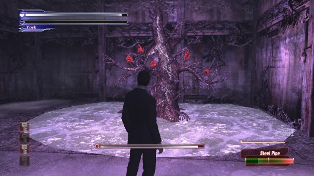 It’s around this part of the game that you get a chance to play as someone other than York (because he’s tied to a chair with a blindfold on). Upon entering a building, as this other character, you’re faced with those red vines and the twisted assailants. Which means, they’re real(?) This completely confused me as everything so far seemed to suggest it was just a York thing.