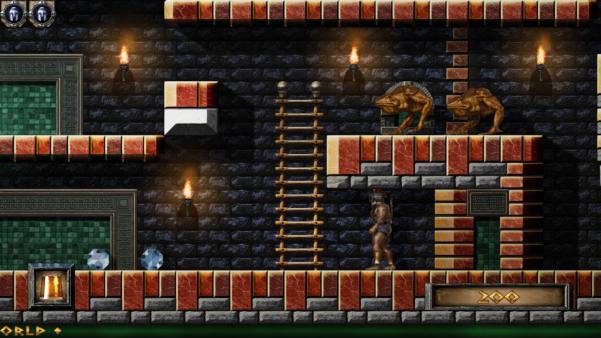 Another nice upgrade is having multiple buttons for control. GODS was originally designed for one button joysticks so you could easily find yourself jumping instead of going through a door if you were off centre with your movement. Now there are separate buttons for jump, attack, inventory, and using levers. Additionally, there’s a turn and fire control which is great for the regular sections of the game where enemies will appear and surround you.