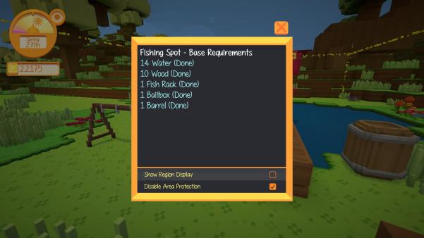 You’re charged with building a barn, so that you can adopt some cows. First off you’re given a sign post, which states what the building is and what it’s requirements are. The only real requirement for a barn is that it mostly fits inside some sparkling 3D guides (toggled from the signpost), and that it contains some specific items (a roof and some troughs for animal feed). You can confirm that a building project is complete by checking the sign, which will tick off items as you add them.